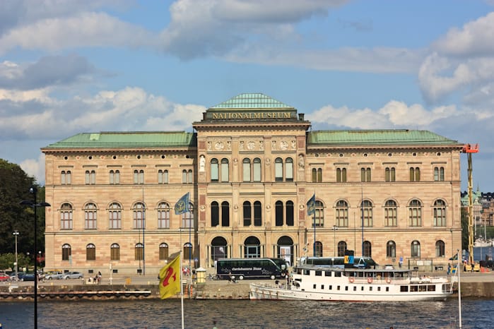 Karin rekommenderar Johan att titta på utställningen Lura ögat på Nationalmuseum som ligger tvärs över vattnet ifrån Slottet och Gamla Stan.