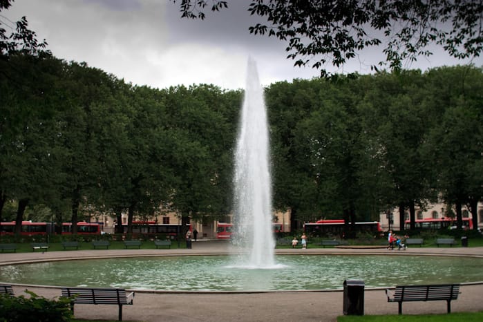 Slutligen så lämnar vi Gamla Stan och beger oss en bit nordost till Karlaplan med dess gröna träd och fontänen i mitten. Vad gör vi här? En av Homansböckernas återkommande huvudpersoner bor här bara ett stenkast ifrån parken.