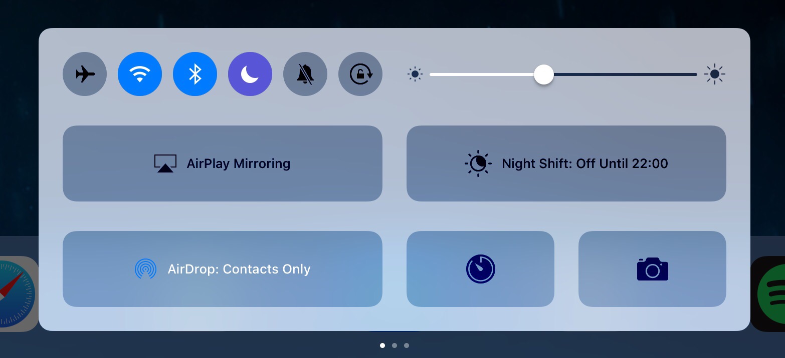 AirPlay, AirDrop och Nightshift. är tre stora knappar som inte skulle behövs ta upp så mycket plats. Istället för knapparna skulle mediaspelarens kontroller finnas. Toppikonerna för wi-fi, bluetooth osv skulle kunna ha 3D-touchsupport där ytterligare alternativ visas i en meny. De undre ikonerna, som kamera och miniräknaren, är fasta och det går inte att välja vad som ska finnas där.