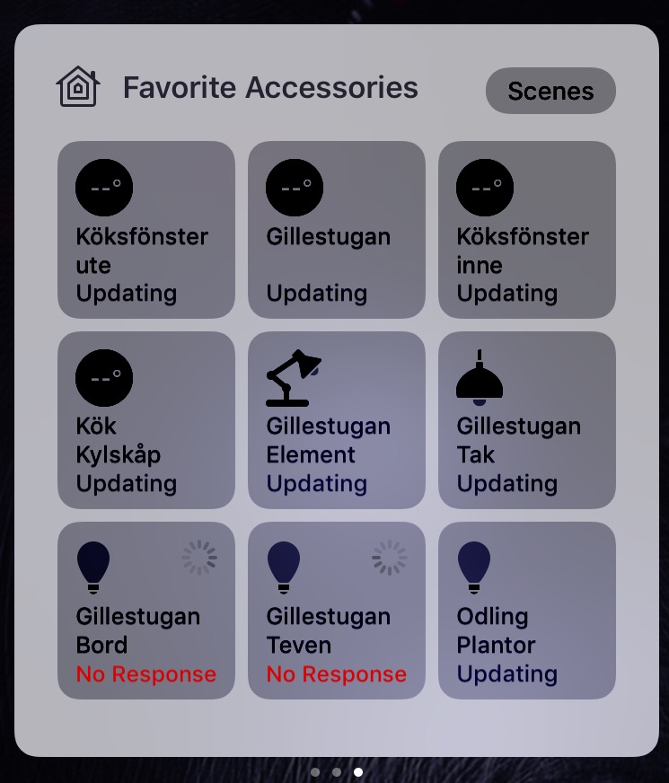 Det är oftast i samband med dessa tillfällen som Hemappen bara står och snurrar på samtliga rutor i kontrollcentret. Ibland dyker rätt värden och status från enheterna upp men ibland kommer bara ett rött utropstecken och texten No response.